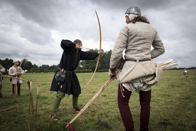 Det frie norske buekompani demonstrerer effekten av krigsbuene.