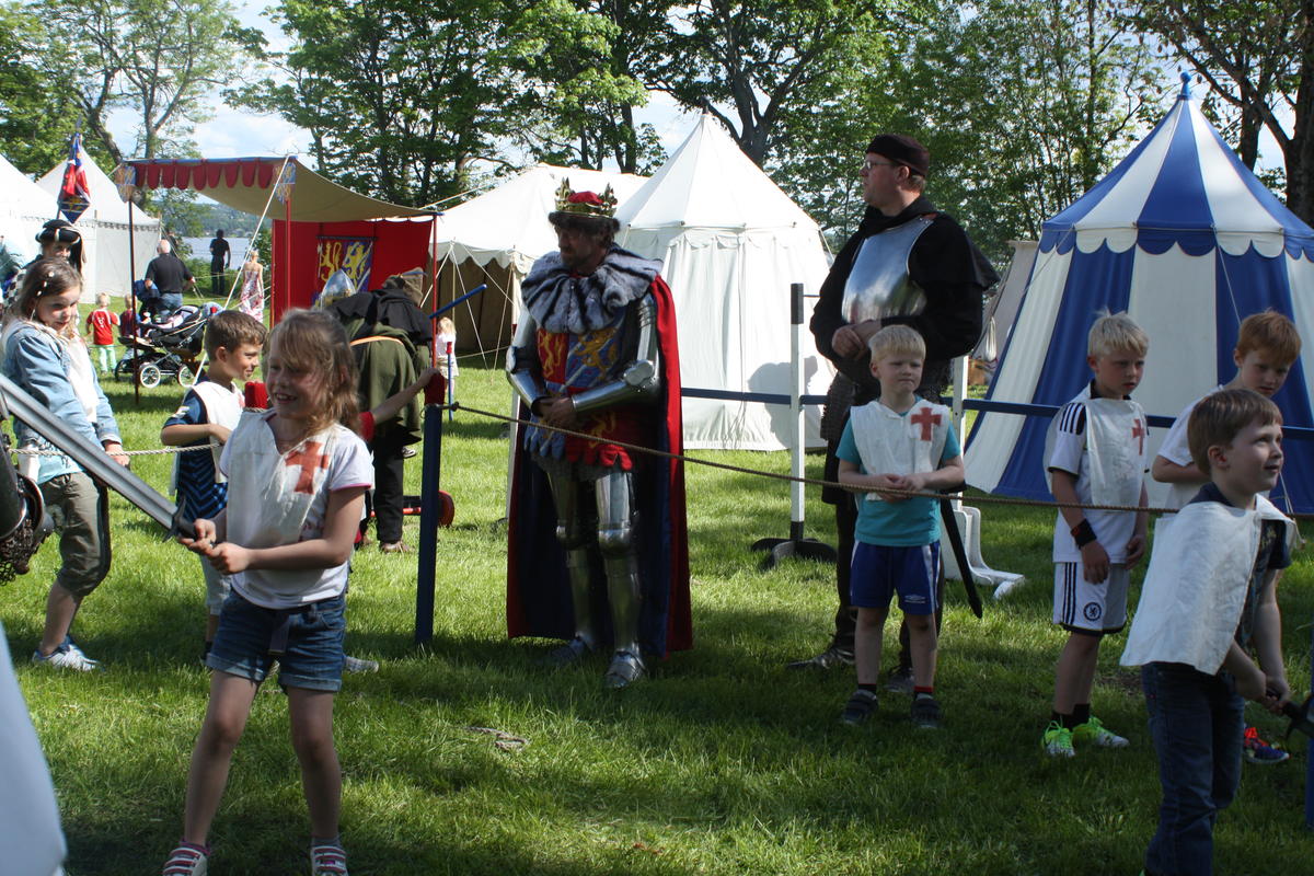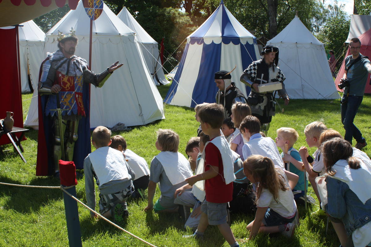 I Norge var ridderne kongens fremste menn. Deres oppgave var å bistå kongen i å styre og forsvare landet. Derfor måtte de beherske sine våpen til hest og til fots, samt kjenne loven og kunne lede andre. På ridderskolen tester kong Håkon deltakerne om de er verdige til å bli hans riddere. De får prøvd sine ferdigheter med våpen, avlegger ed om troskap til kongen og får sitt ridderbrev.
